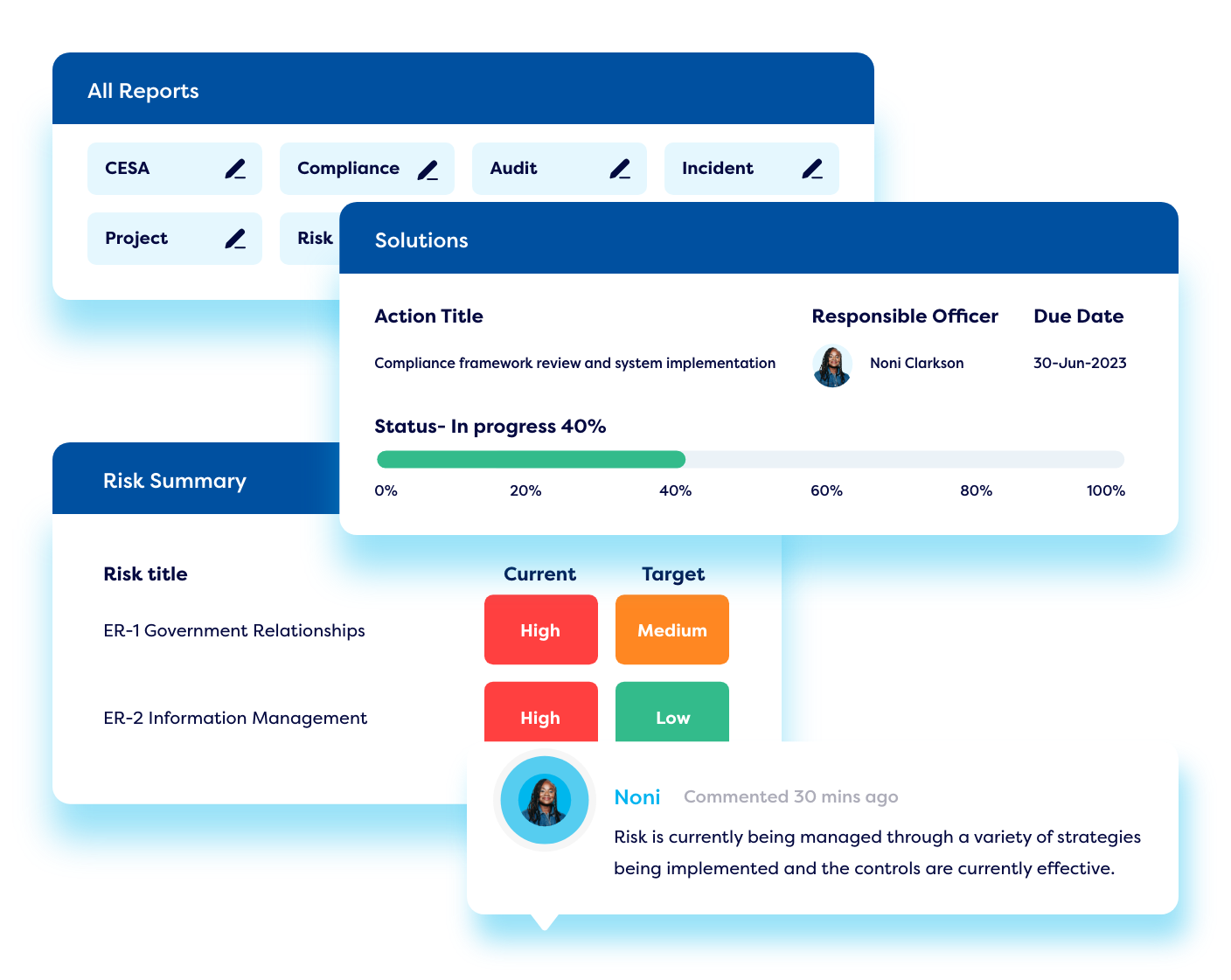 Camms has provided us an opportunity to reduce the time overhead of manually manipulating data by automating reporting and reminders, and provided a more robust system for managing risk, compliance, audit and incident activities. The simplicity of the system has meant that there is more engagement from the business in managing its compliance and assurance activities, while the automated reporting has reduced the time it takes to complete monthly reports.