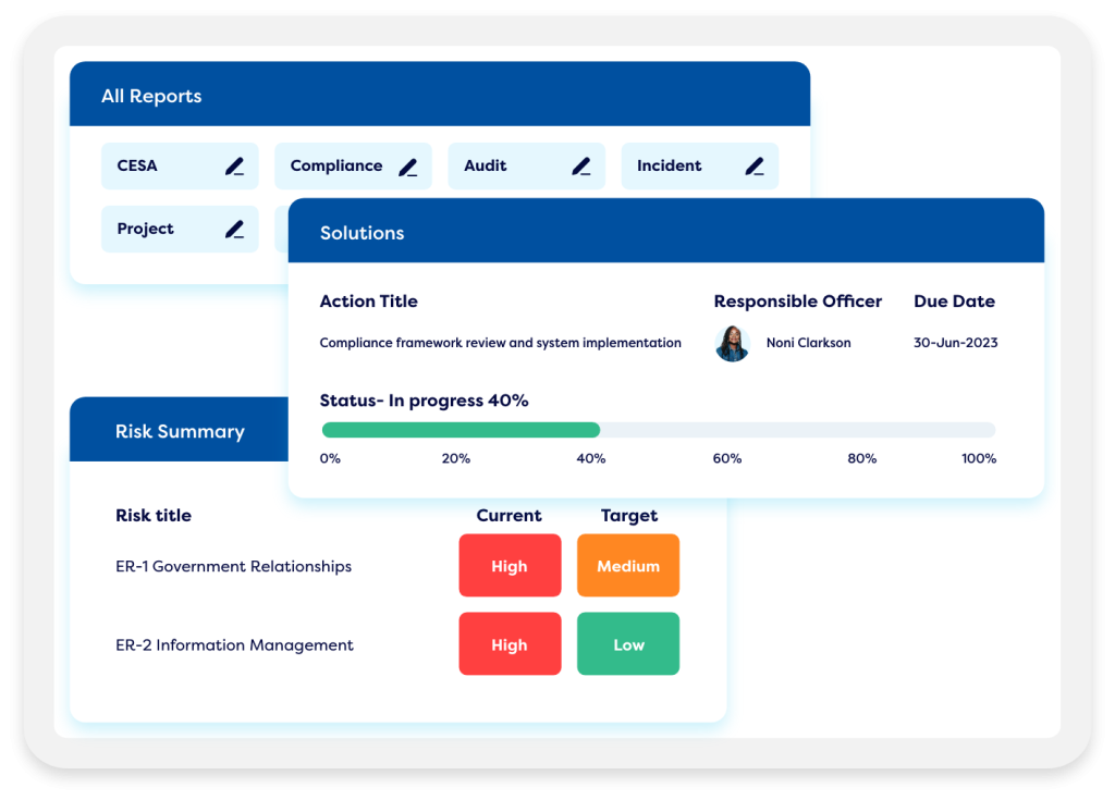 Engage your stakeholders with interactive dashboards that bring your information to life. Available to use with all Camms software solutions.