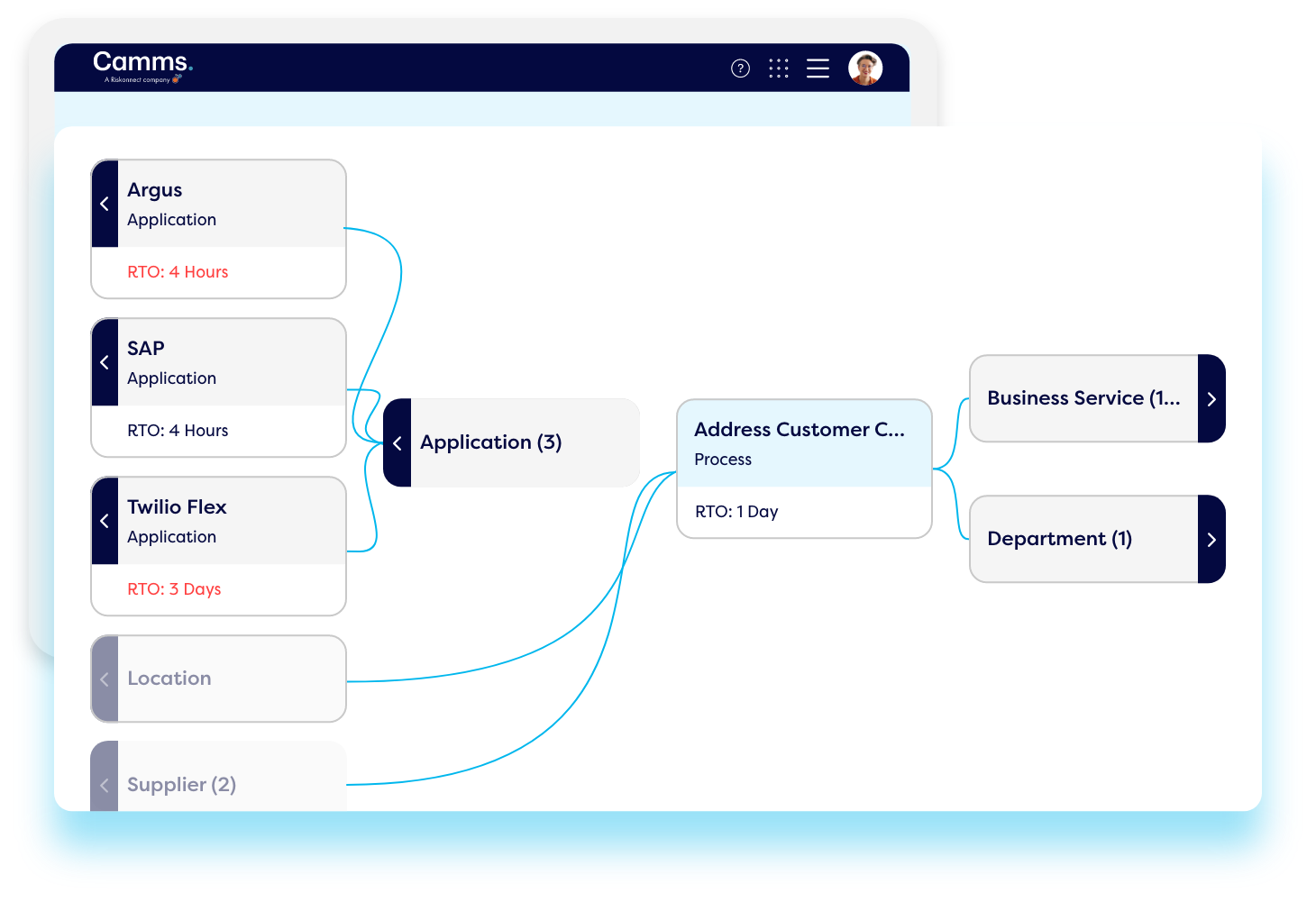 Our business continuity planning software enables firms to implement best-practice business continuity planning processes that align with key standards & regulations like ISO 22301, ISO 31000, ISO 27001, CPS 230, CPS 232, DORA, Basel III, HIPAA, and SOX. This enables you to provide proof of compliance with key BCM standards and regulations.