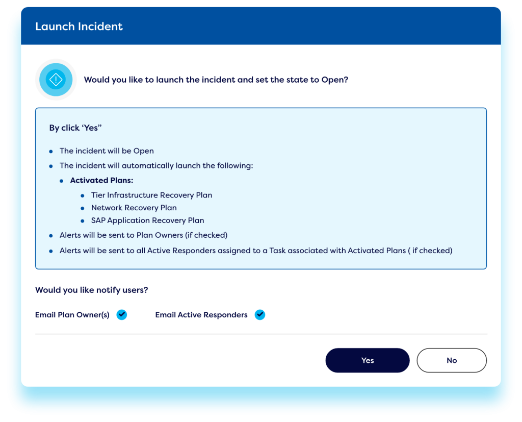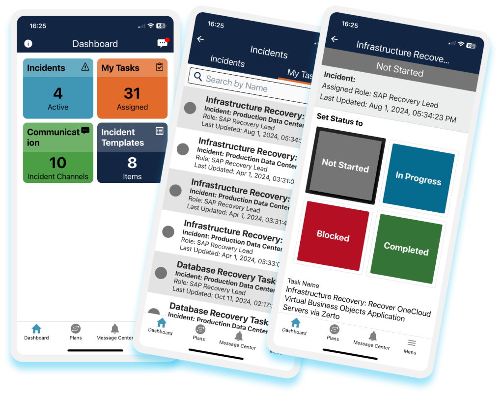 Our emergency management software platform comes with a mobile app – allowing firms to create an incident and launch incident response plans anytime, anywhere. Responders can also receive notifications and complete tasks & actions in the mobile app – ensuring timely incident response and effective crisis management.