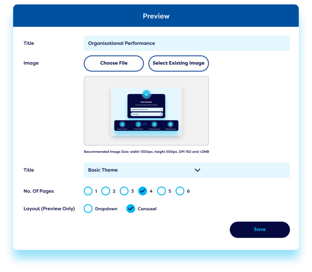 Present information through easy-to-navigate, interactive dashboards that can be customised to match your brand.