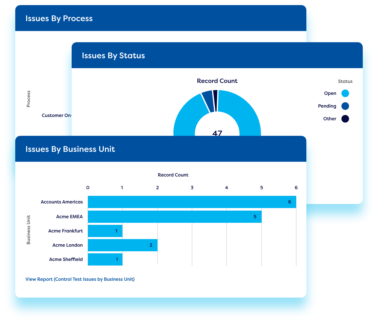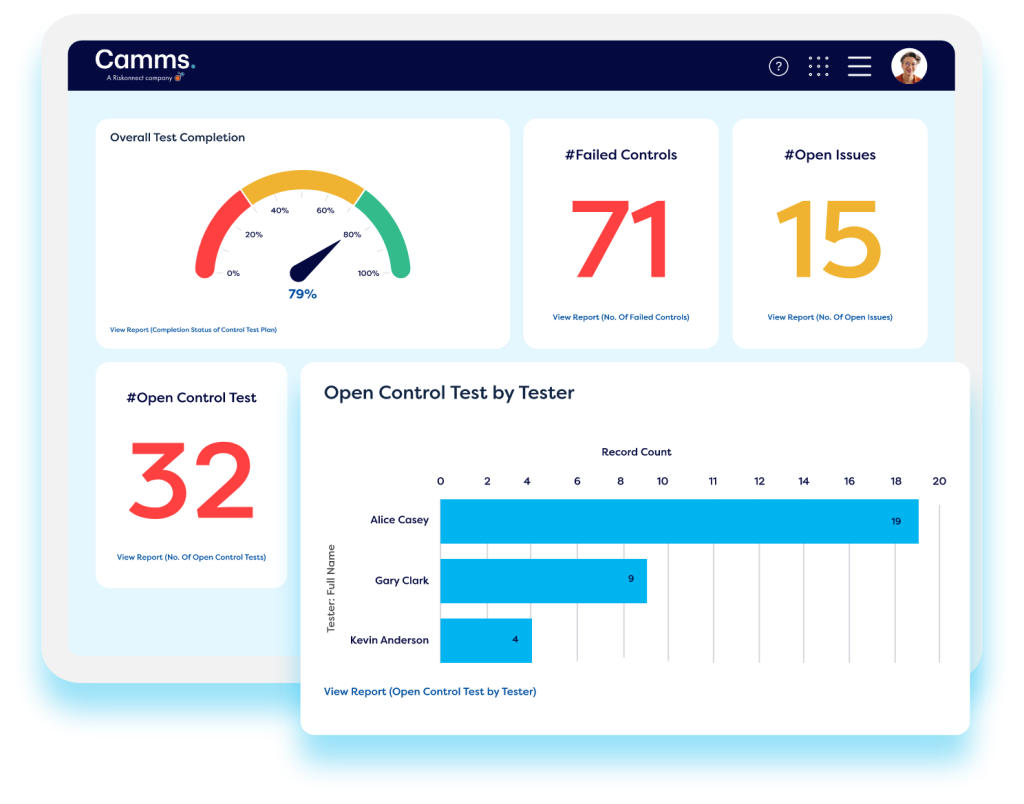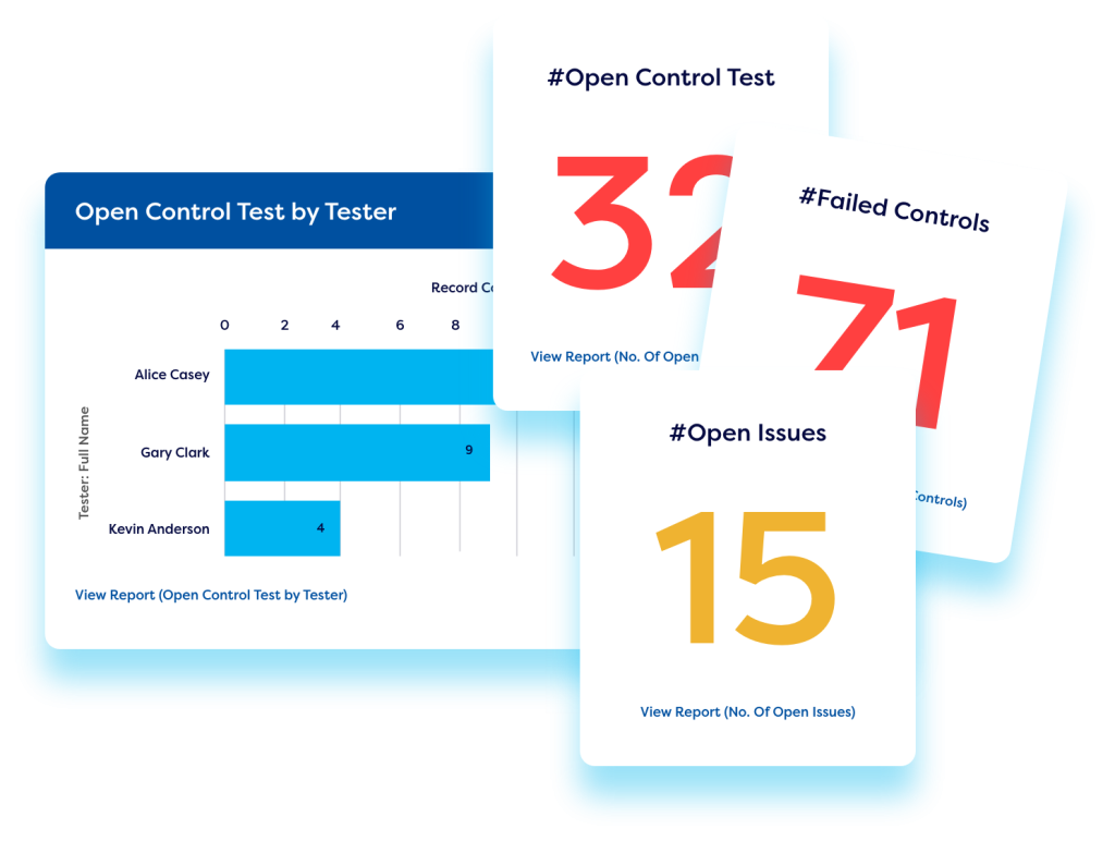 Use the results of controls checks and control tests to provide proof of regulatory compliance and quality management to regulators and avoid hefty fines. Confidently demonstrate adherence to control testing requirements that align with key standards & regulations including SOX, COSO, ISO 27001, GDPR, Basel III, PCI DSS, HIPPA, NIST and many more.