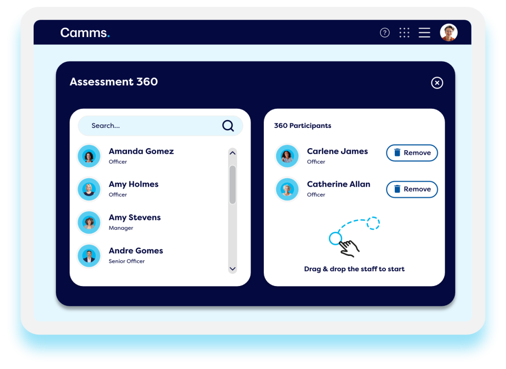 Build your assessments around criteria matters most to the organisation and individual, using a host of standard assessment options plus build your own with custom elements.