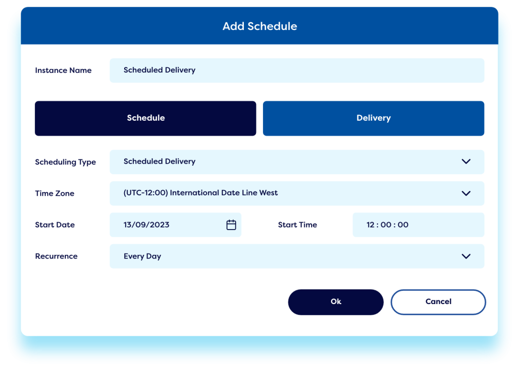 Setup customised schedules to automatically email reports to specific individuals.
