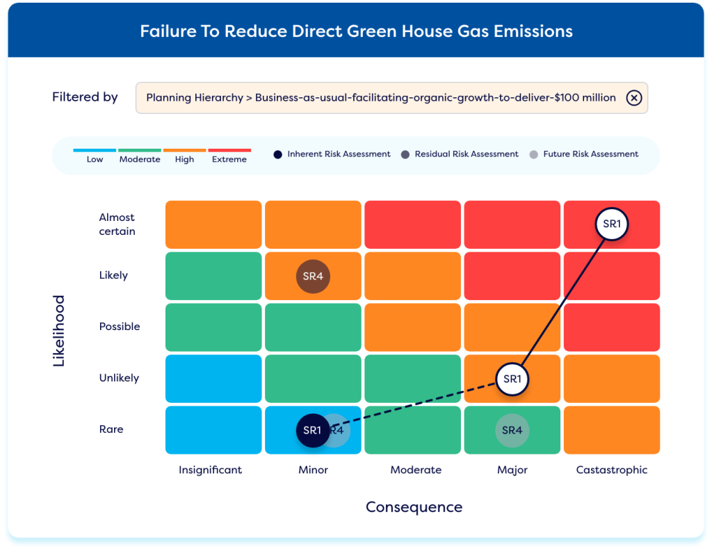 Our risk management dashboards allow teams to connect risks to organisational objectives, helping leaders grasp the impact of risks on key goals and strategic plans.